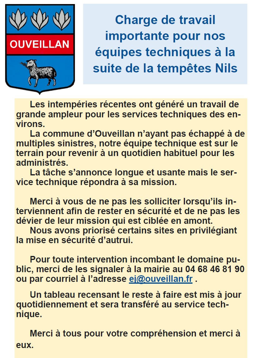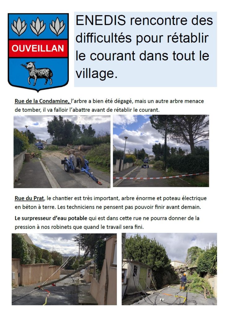 Par ailleurs de nombreuses maisons d’Ouveillan, qui ne sont pas dans ces rues sont encore sans électricité.
