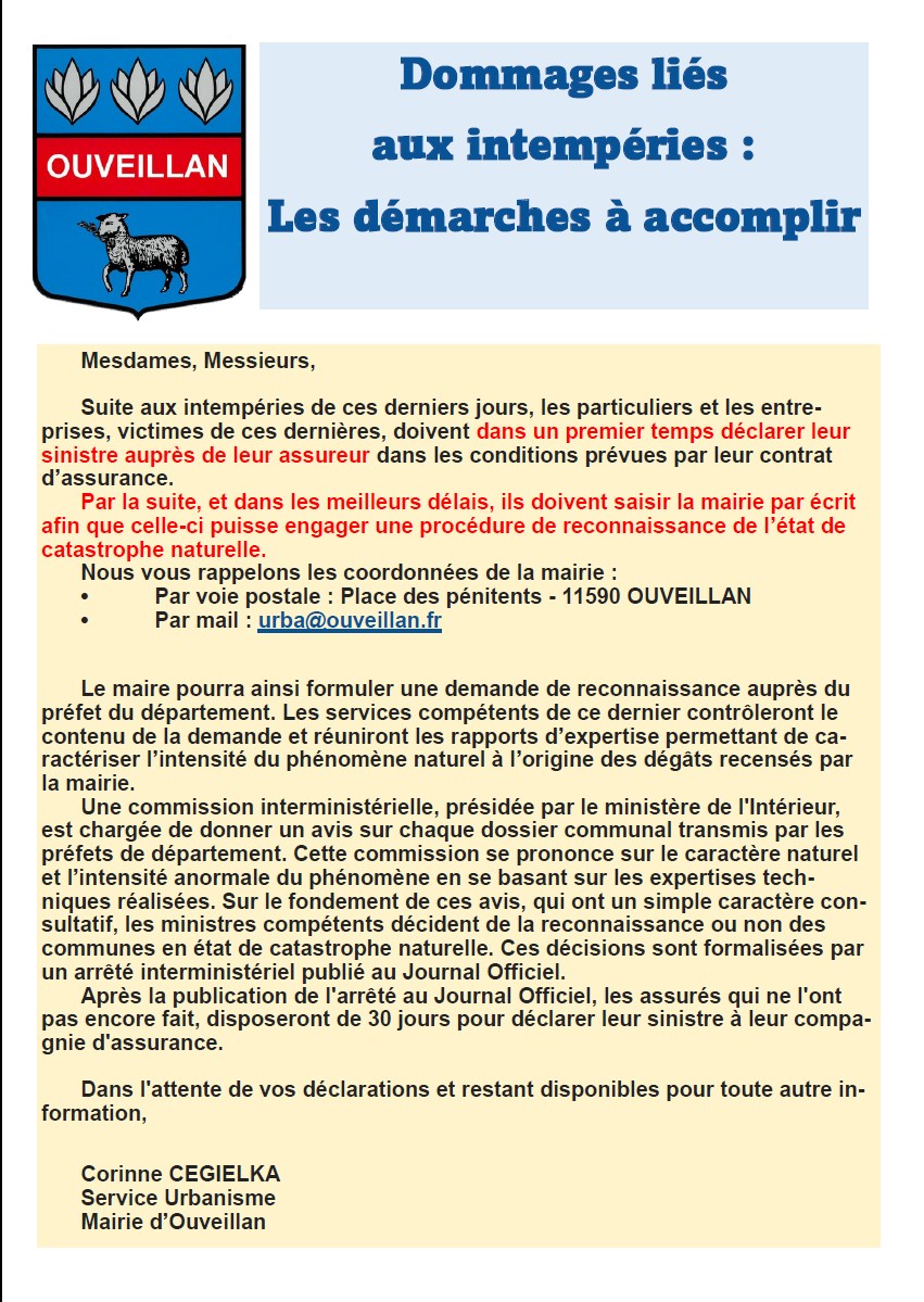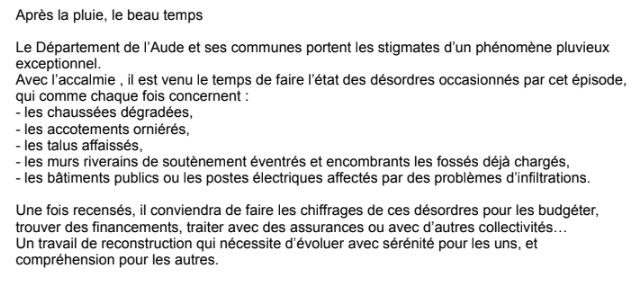 Par ailleurs de nombreuses maisons d’Ouveillan, qui ne sont pas dans ces rues sont encore sans électricité.