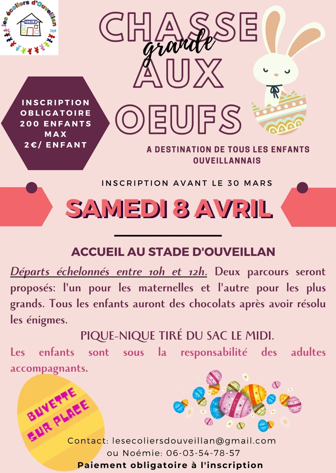 Compte tenu des fortes chaleurs annoncées ce samedi 24 juin, nous décalons les horaires de la Kermesse. Les portes seront ouvertes à partir de 10h jusqu’à 12h. Pensez à prendre des chaussettes pour les enfants sur les jeux gonflables afin d’éviter les blessures.