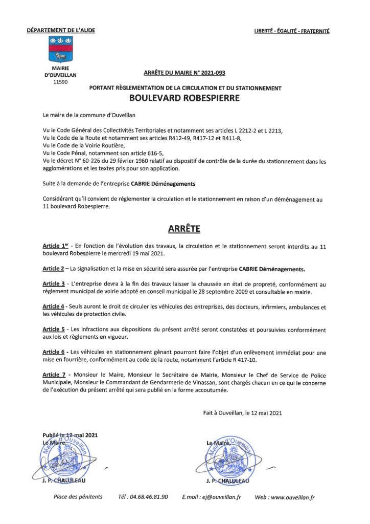 Arrêté « Rue Robespierre » du 10/05/21 n°2021-090 Actualités, Arrêté, Travaux / 25/05/2021 / Arrêté municipal, Circulation, Travaux Arrêté « Rue Robespierre » du 10/05/21 n°2021-090 1 fichier·s 67.97 KB Télécharger Arrêté « Rue Robespierre » du 10/05/21 n°2021-090 Lire la suite »