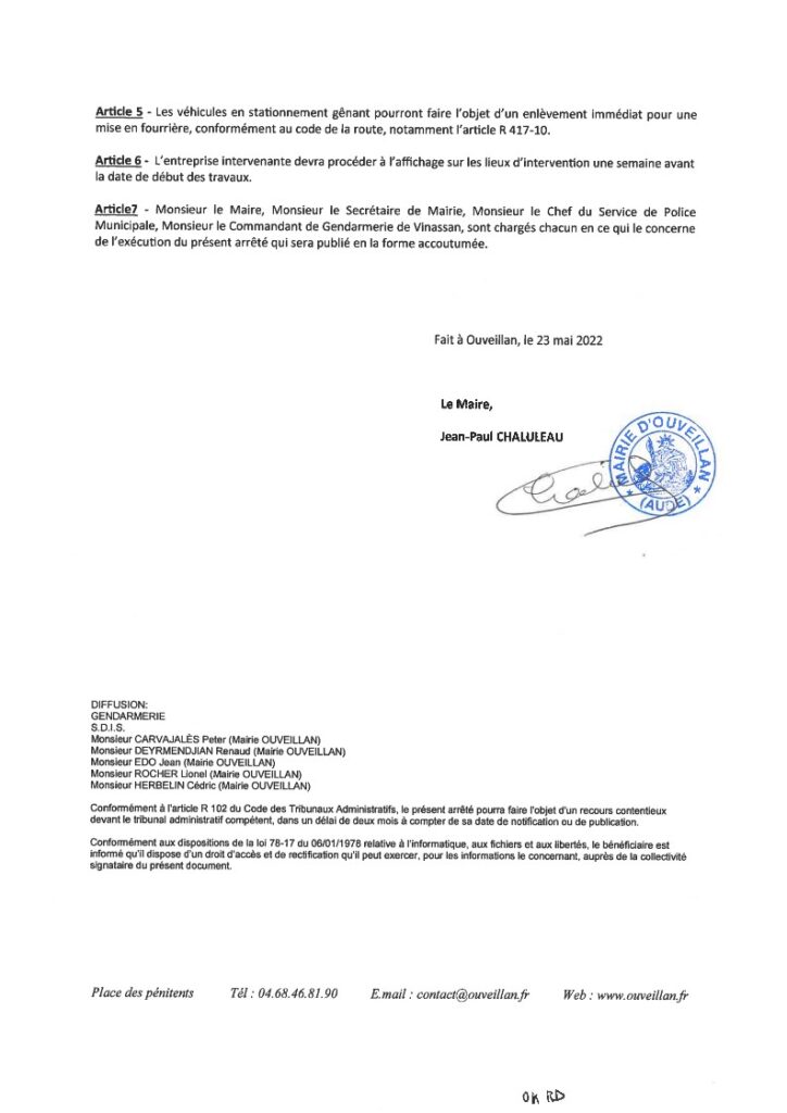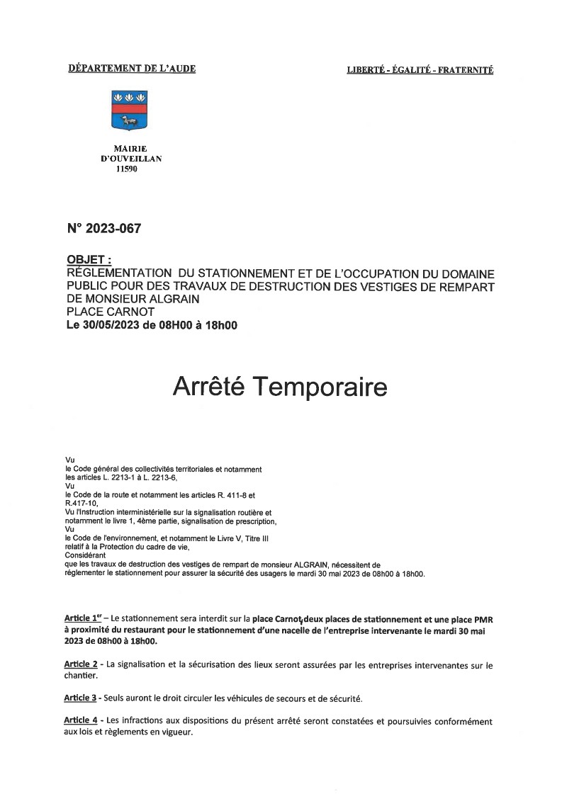 Arrêté «place handicapé» du 24/05/23 n°2023-069