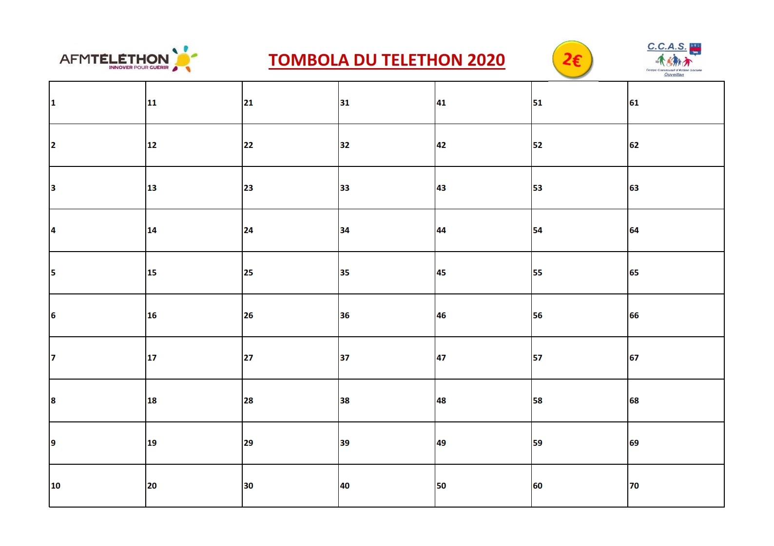 Vous trouverez des grilles de tombola à 2€ le numéro.