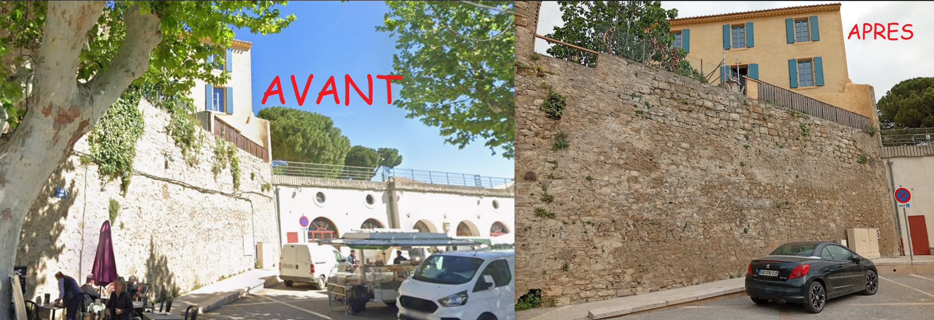 Le rempart se trouve débarrassé des câbles disgracieux dans l’attente d’une prochaine réfection, et la pollution visuelle de leurs poteaux disparaît.