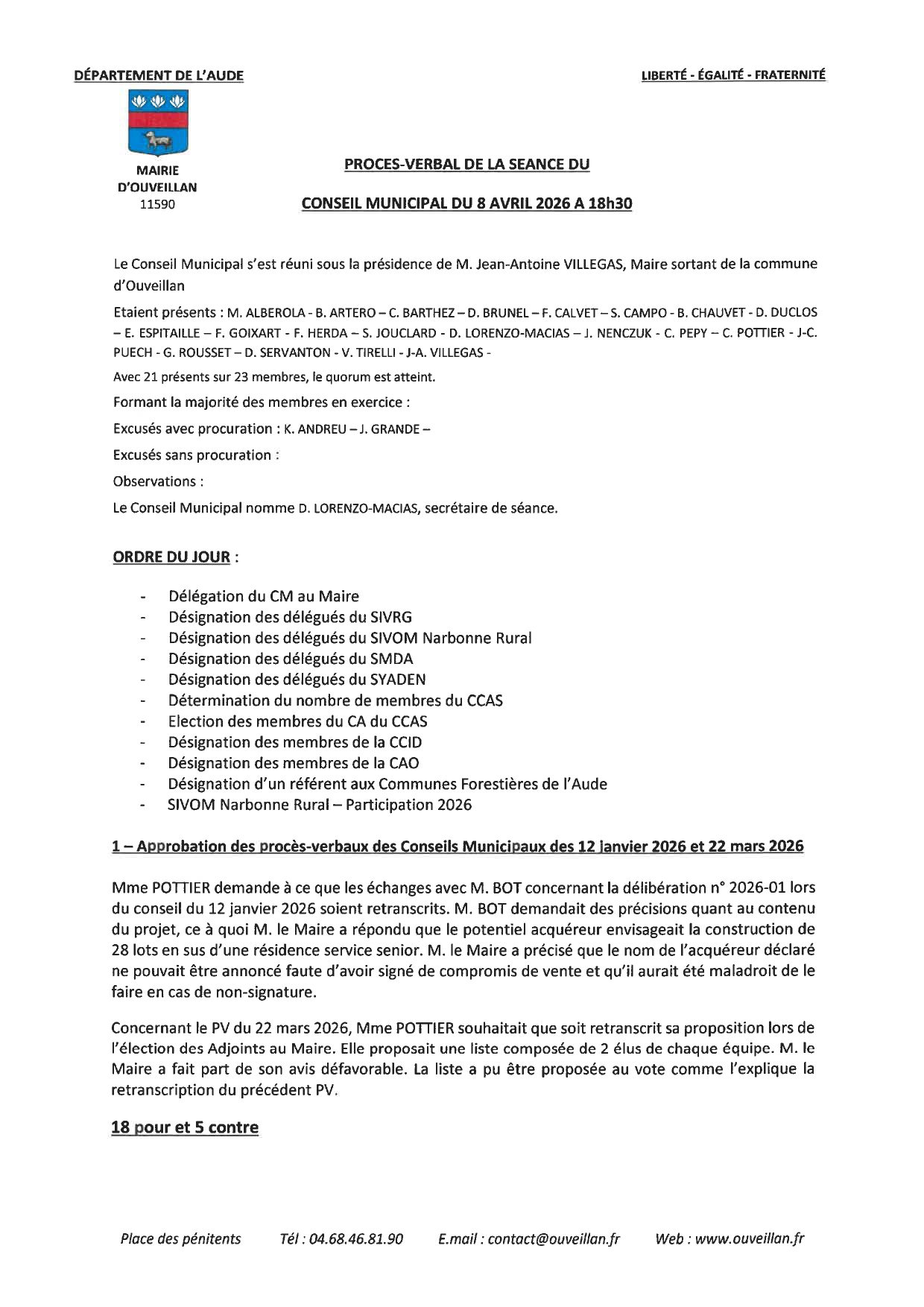 • PV du Conseil Municipal du 08/04/202622/04/2026